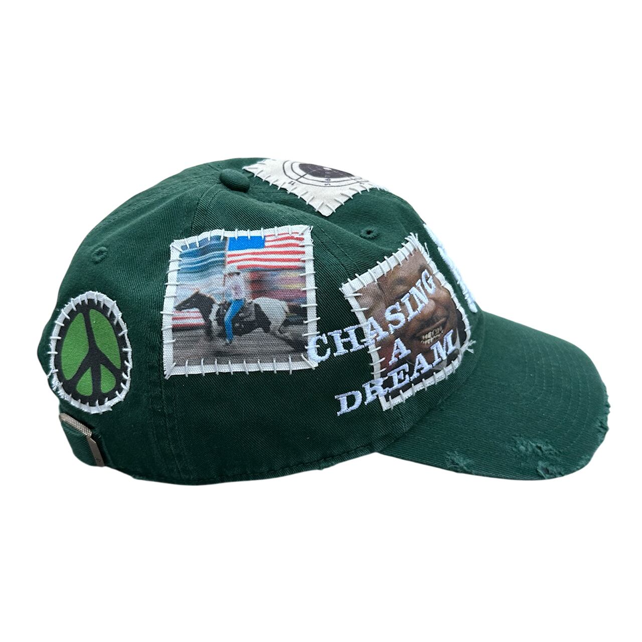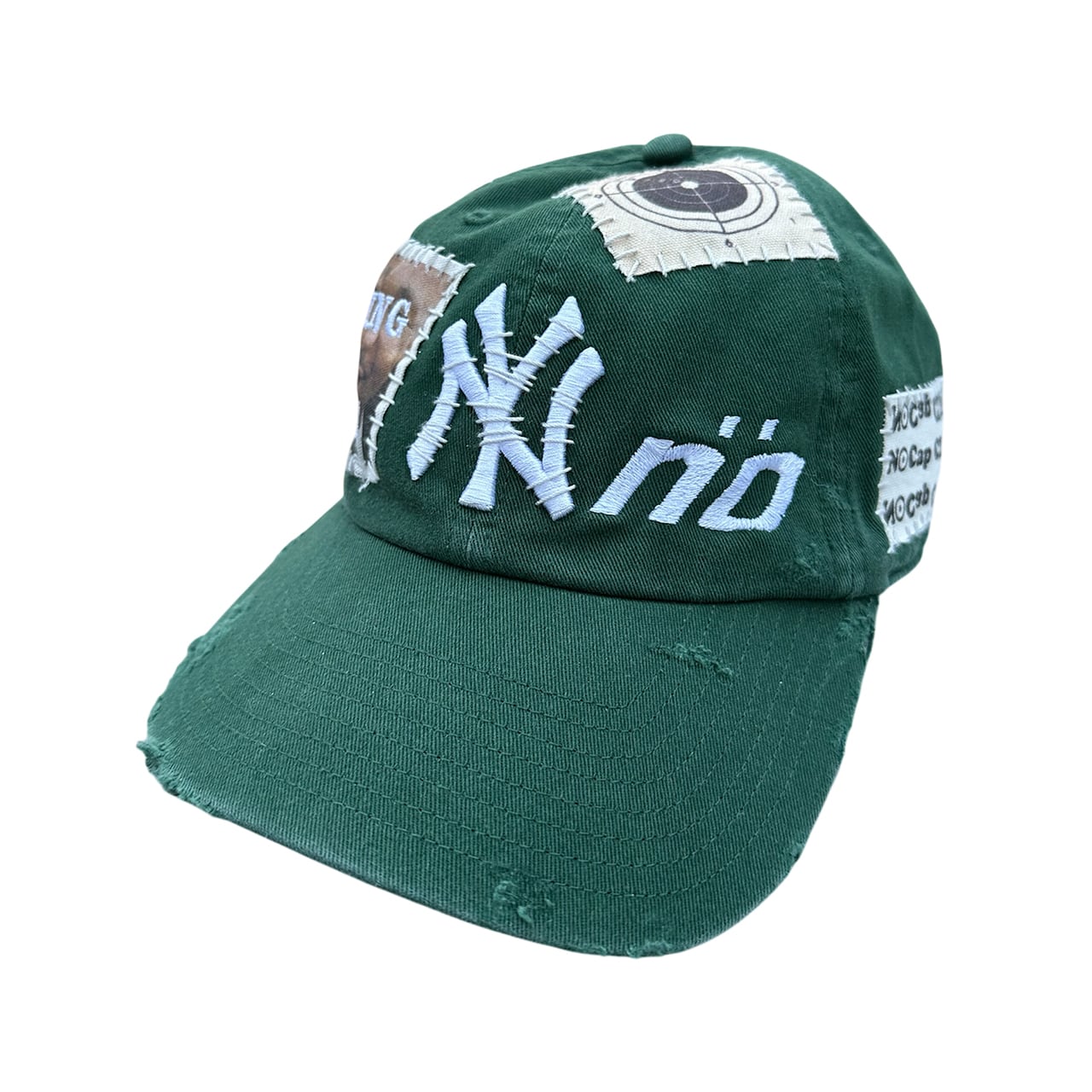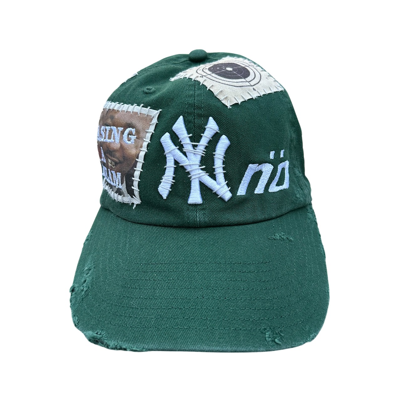 パッチを手縫いで縫った後に機械刺繍、ダメージ加工を施した1点物のアイテム。