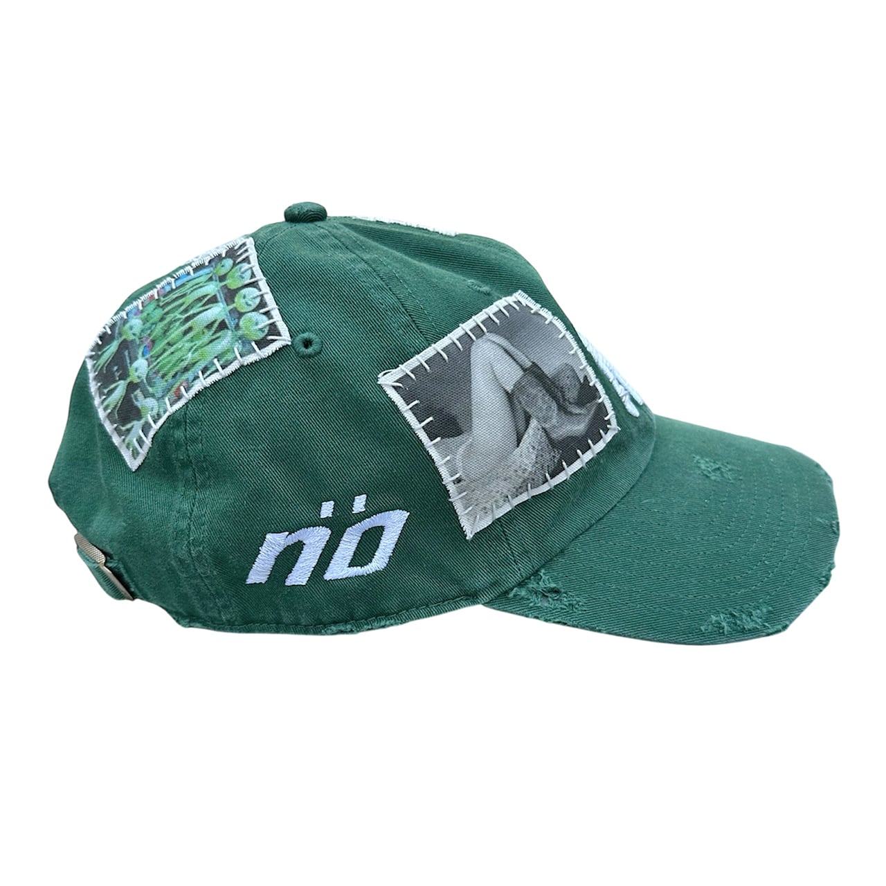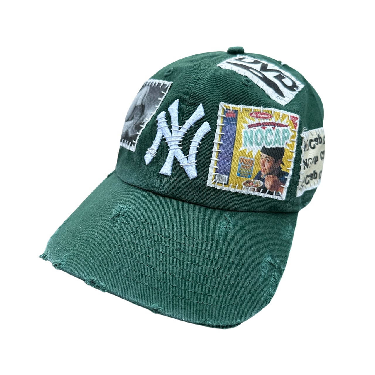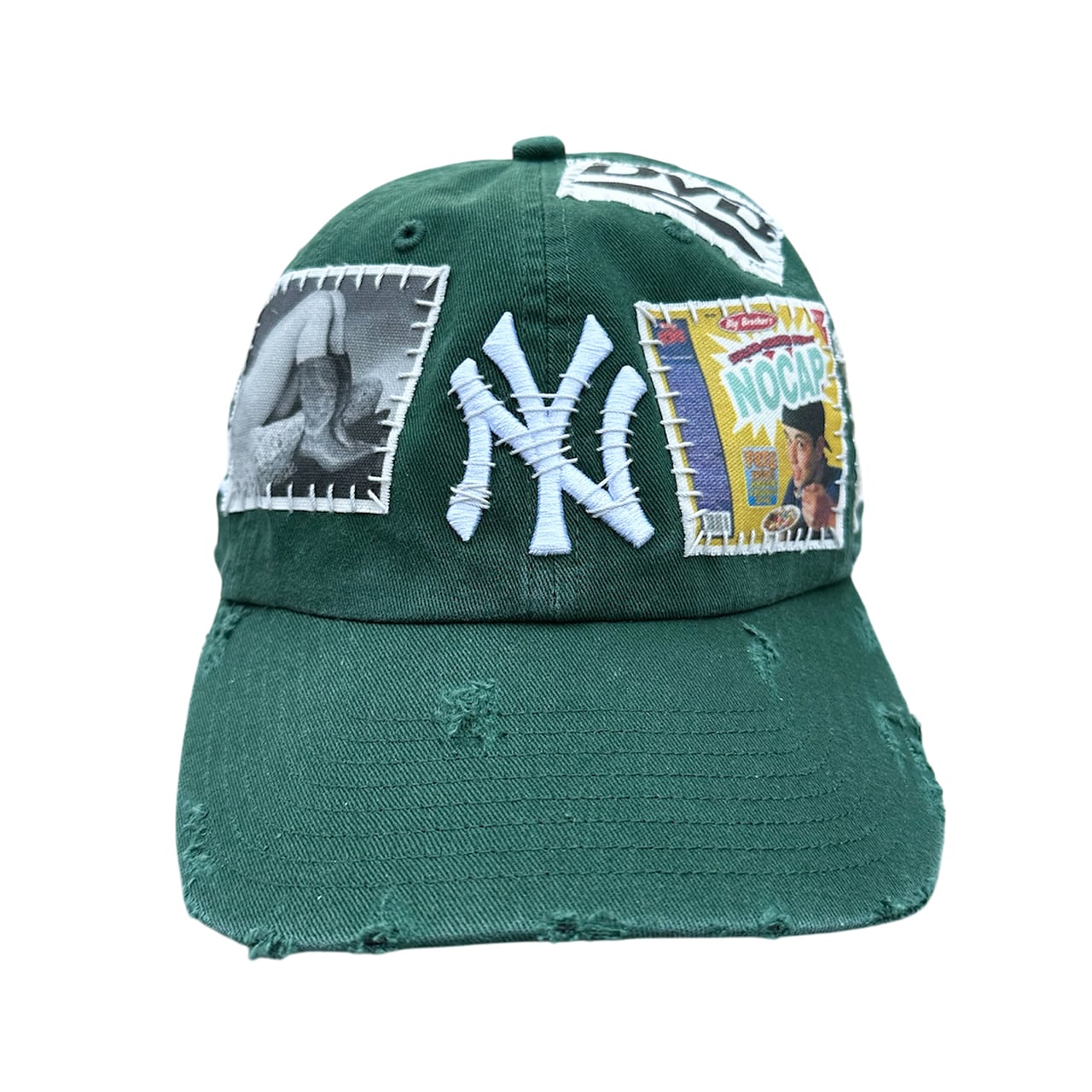 パッチを手縫いで縫った後に機械刺繍、ダメージ加工を施した1点物のアイテム。