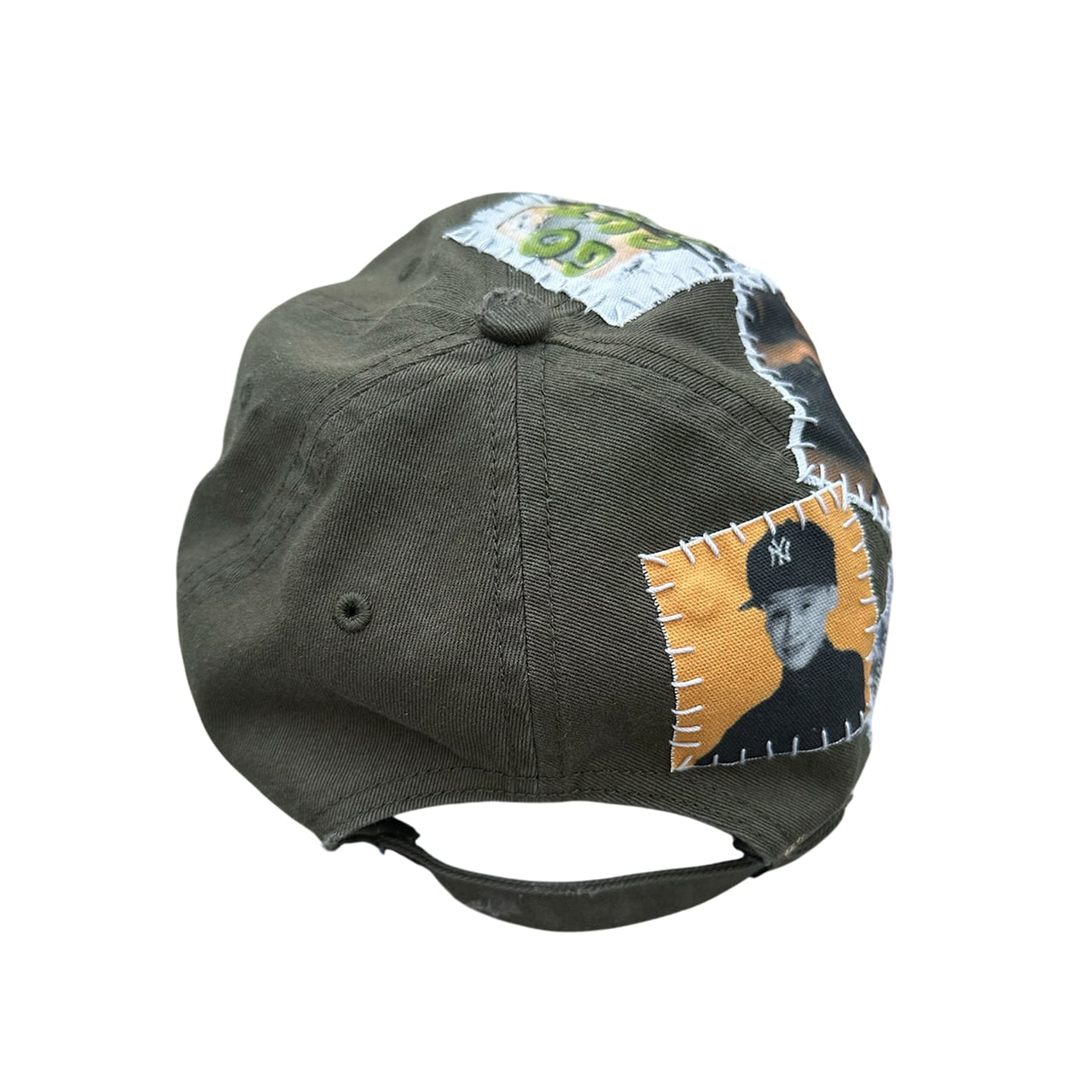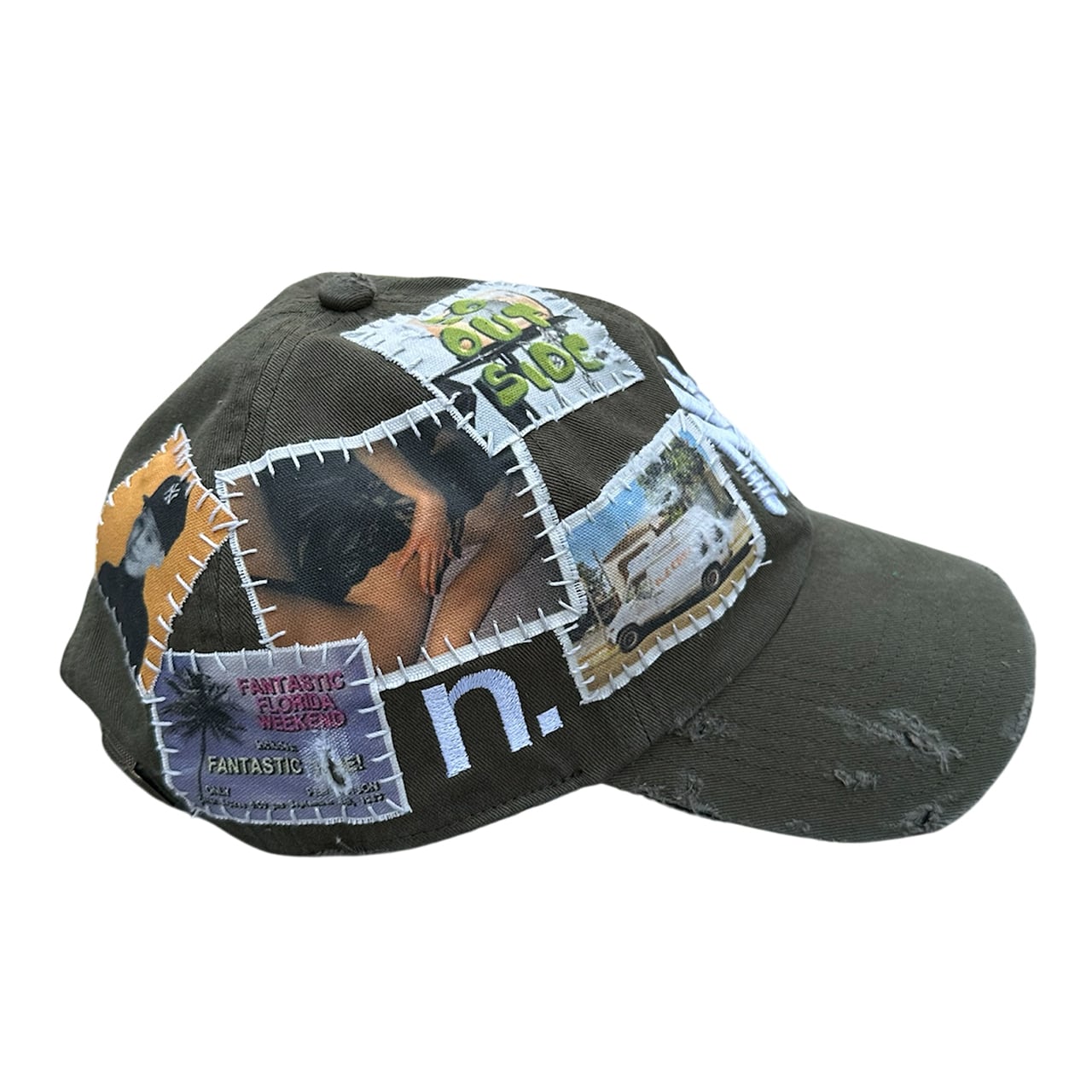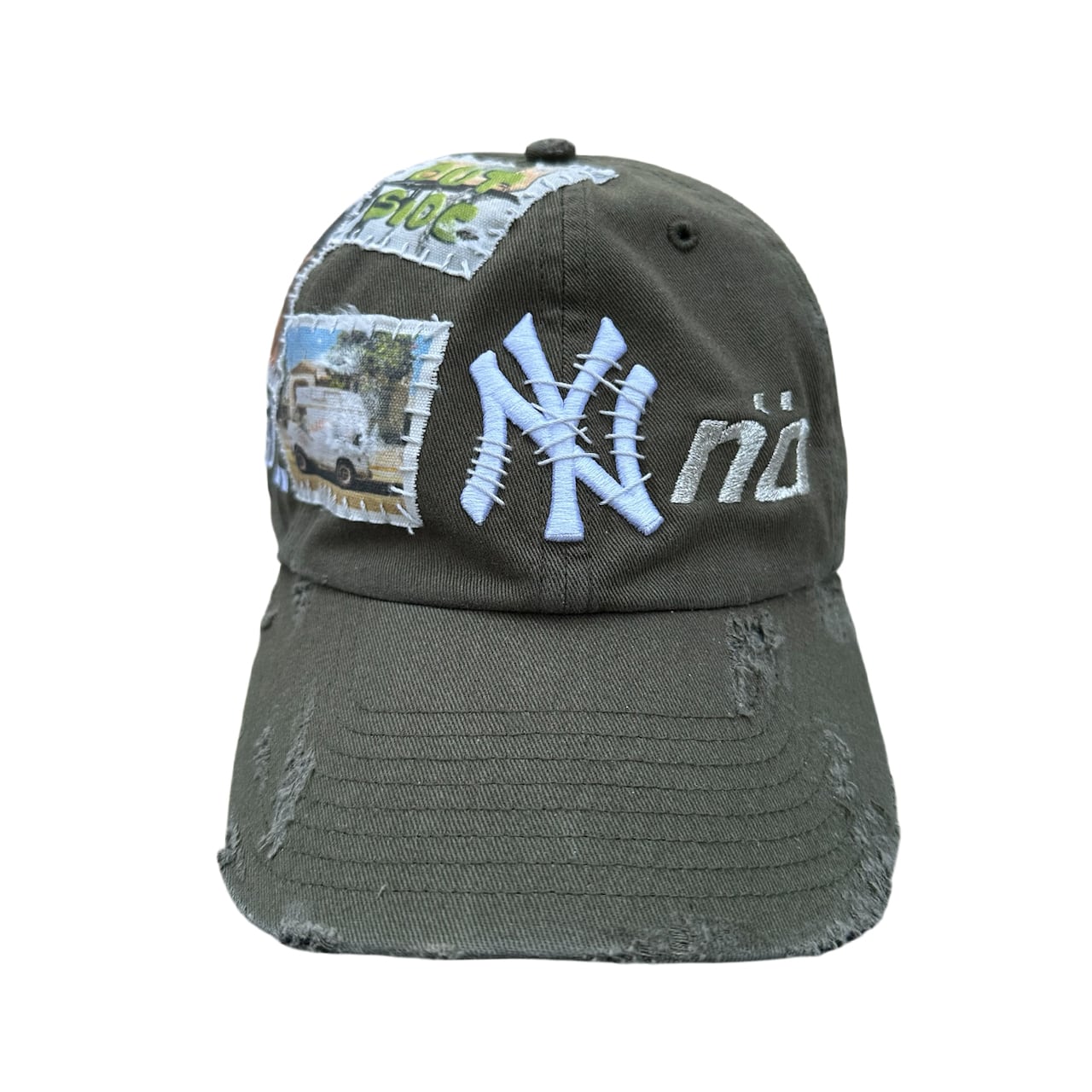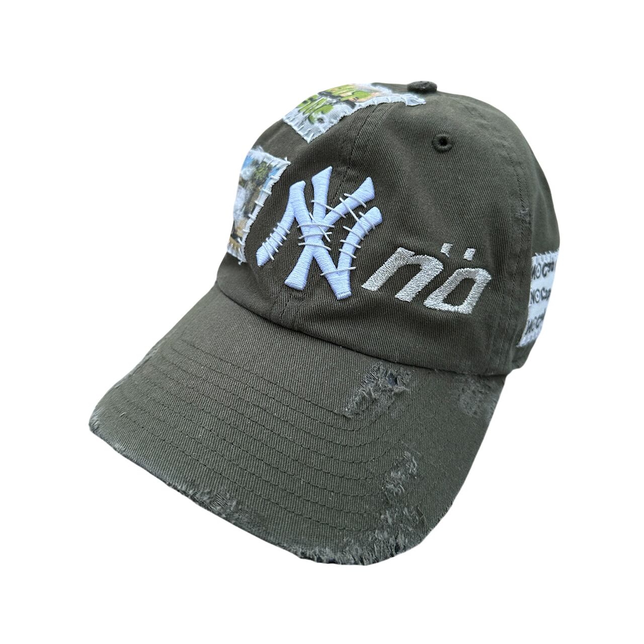 パッチを手縫いで縫った後に機械刺繍、ダメージ加工を施した1点物のアイテム。