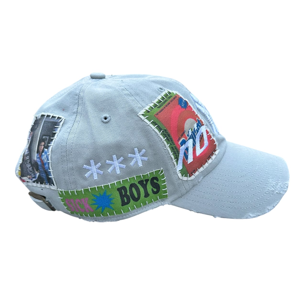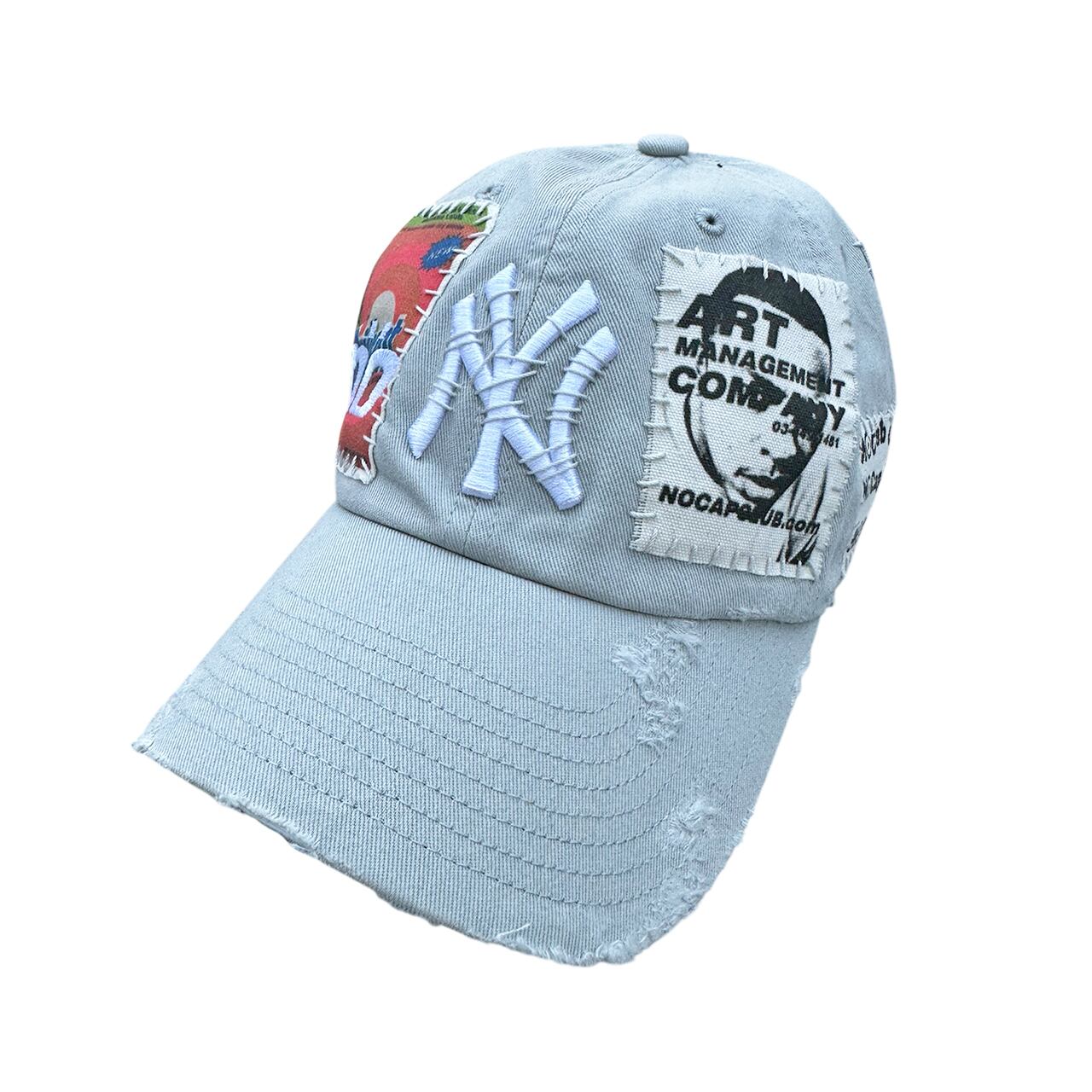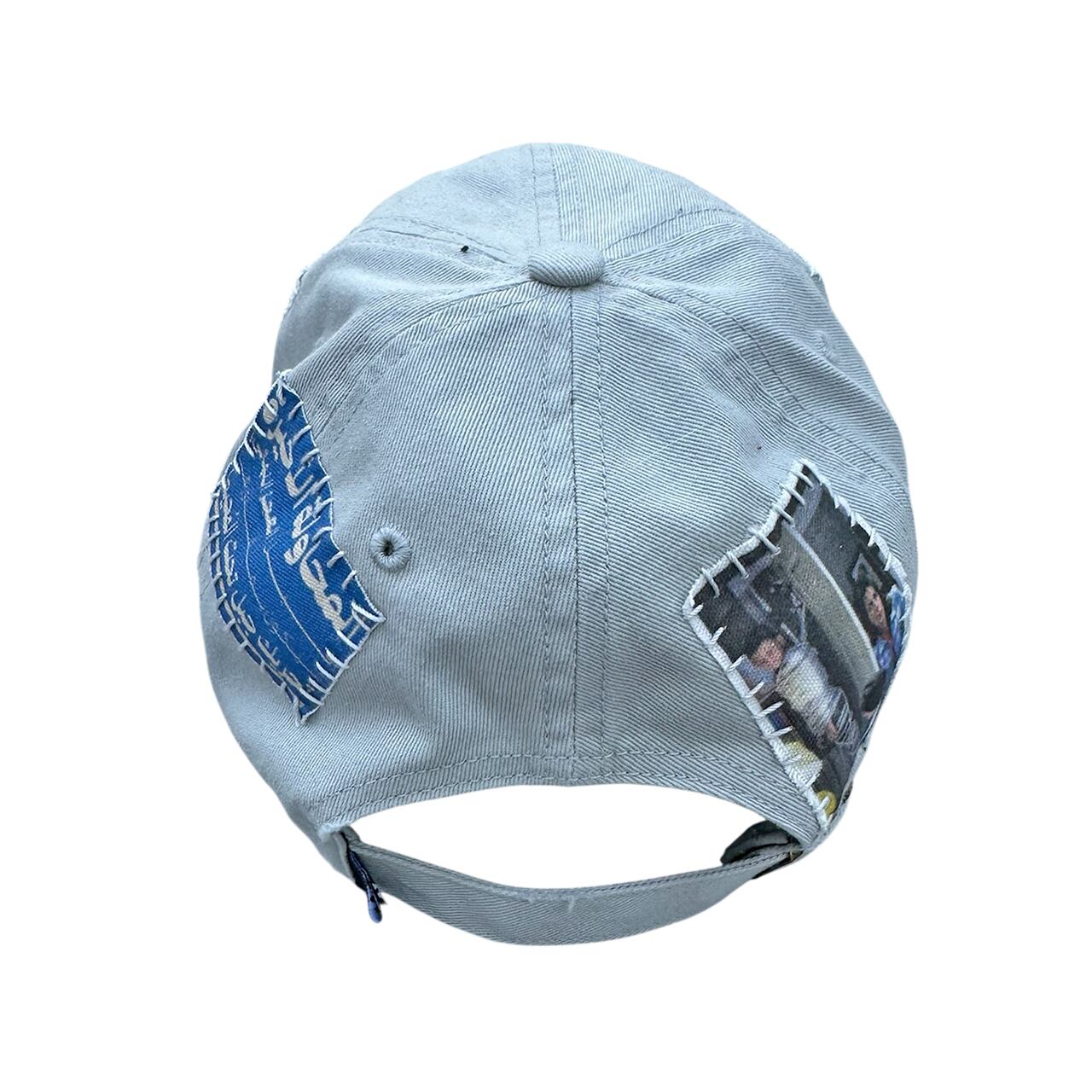パッチを手縫いで縫った後に機械刺繍、ダメージ加工を施した1点物のアイテム。