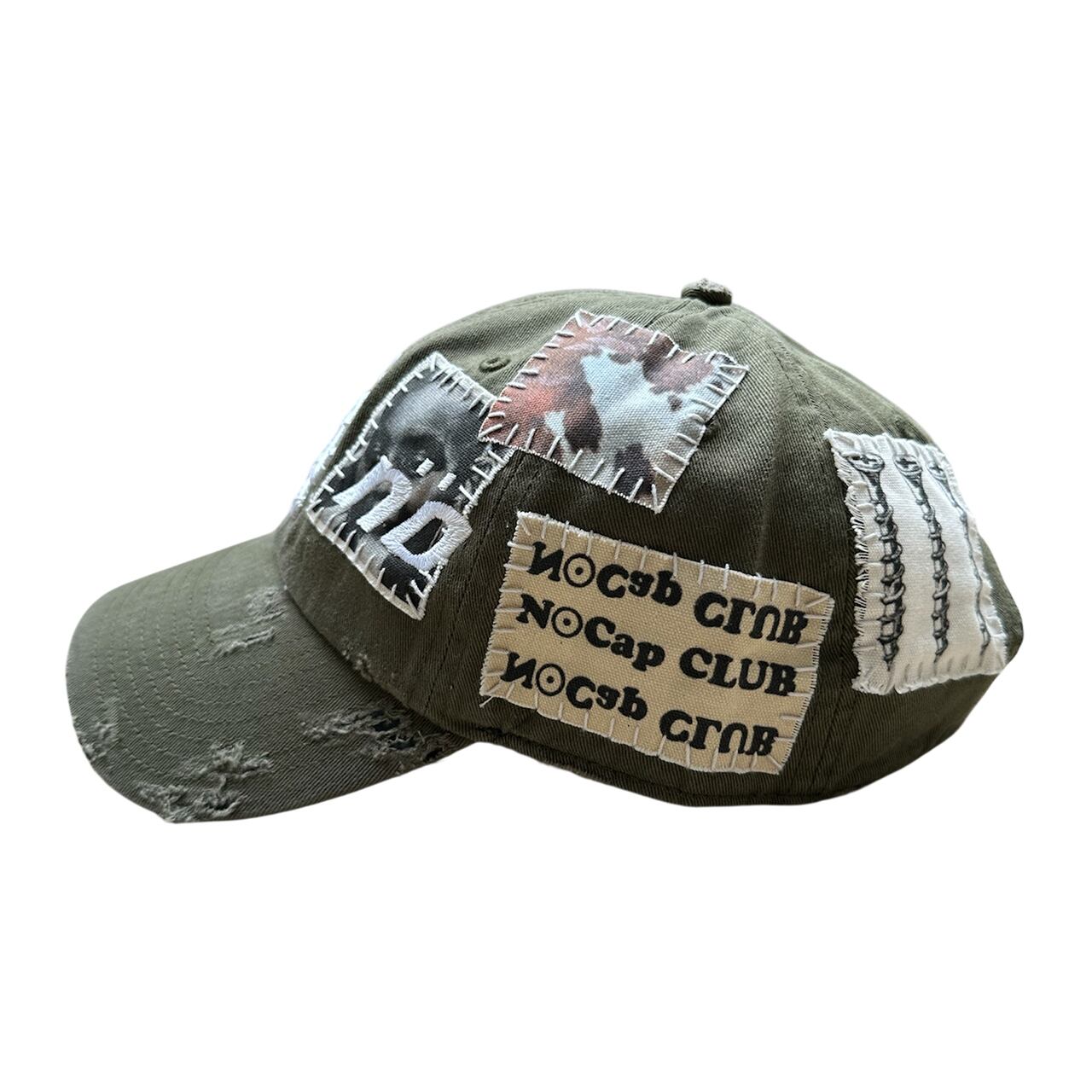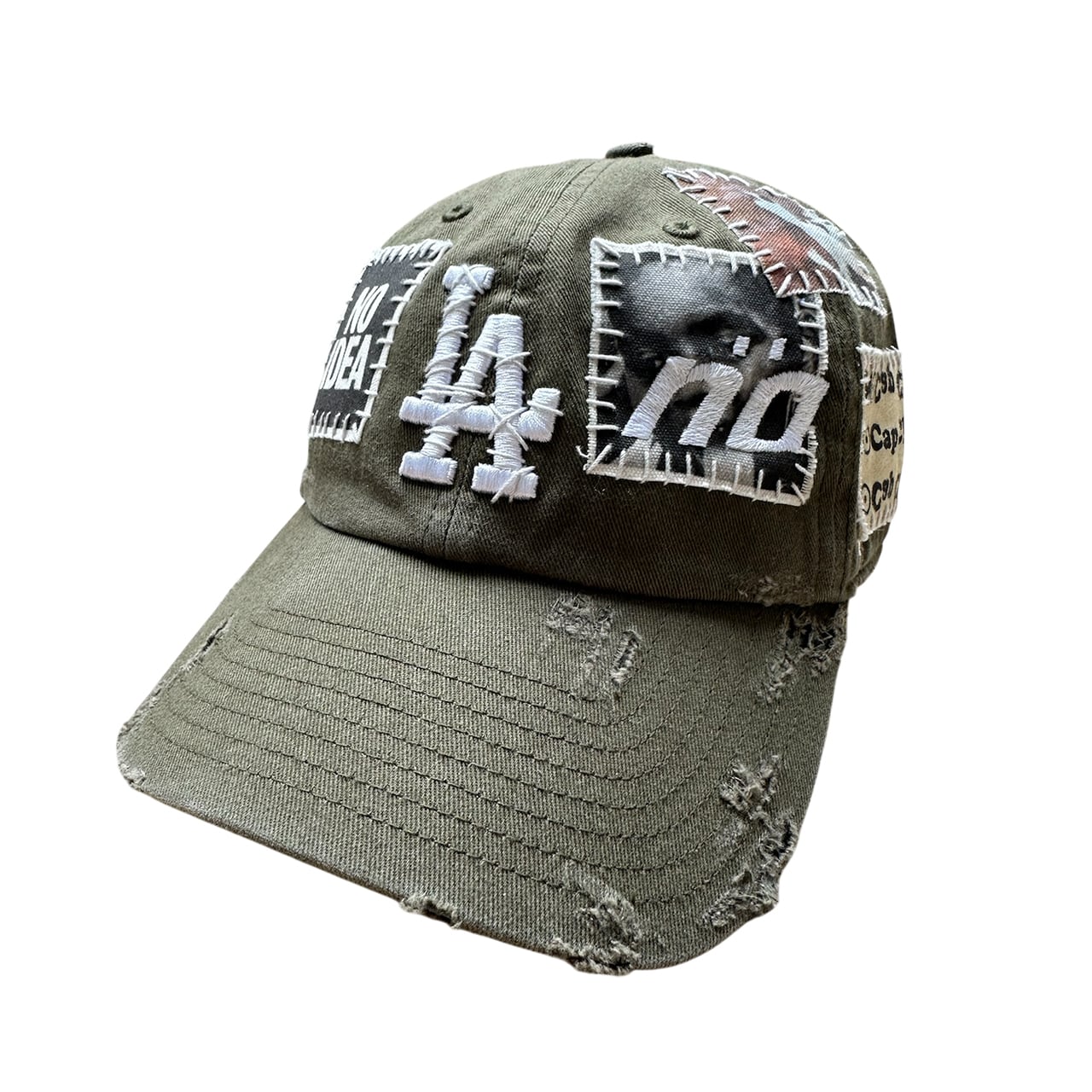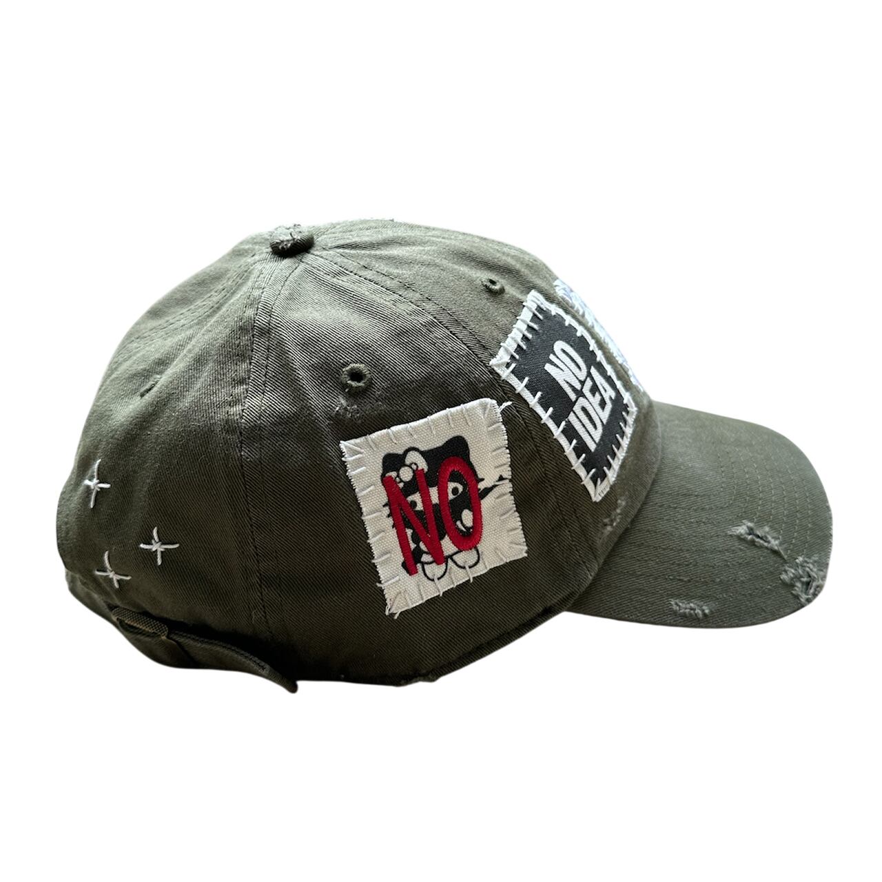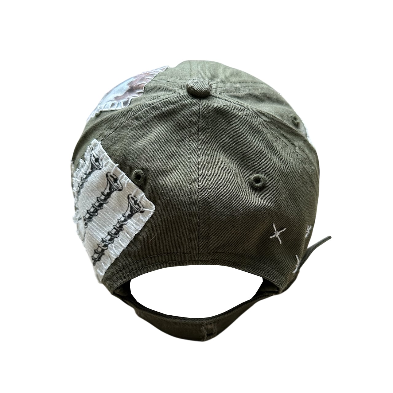 パッチを手縫いで縫った後に機械刺繍、ダメージ加工を施した1点物のアイテム。